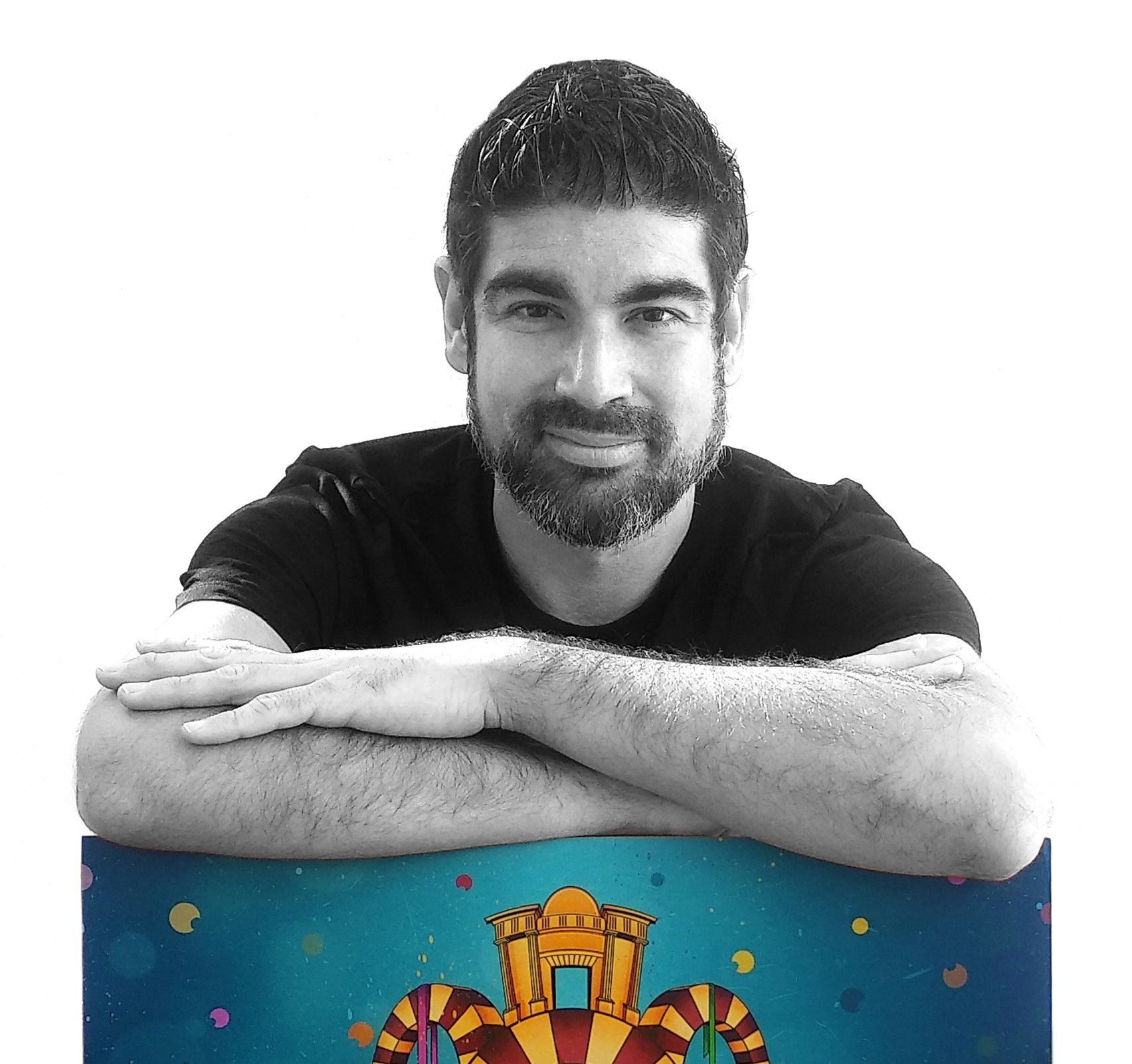 Nací en el año 1981 en Posadas (Córdoba), en el seno de una familia dedicada al mundo del arte. Desde pequeño comienzo a dibujar y pintar prácticamente a diario, haciendo garabatos en todo lo que se me ponia por delante. Gracias a la empresa familiar, también empiezo a tomar contacto con el mundo de la serigrafía, una disciplina gráfica que siempre me ha apasionado.